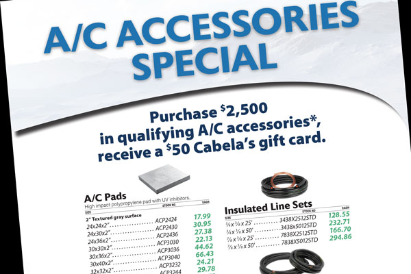 Purchase $2,500 in qualifying A/C accessories*, receive a $50 Cabela’s gift card.